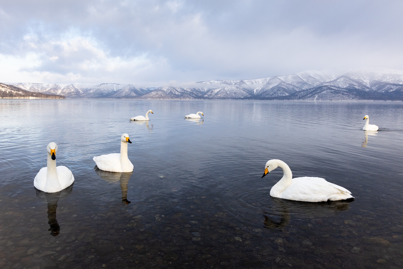 En Akan disfrutaremos de los cisnes cantores nadando en aguas termales, del esquivo búho pescador de Blakiston, de zorros, ciervos Shika y muchas más especies de aves.