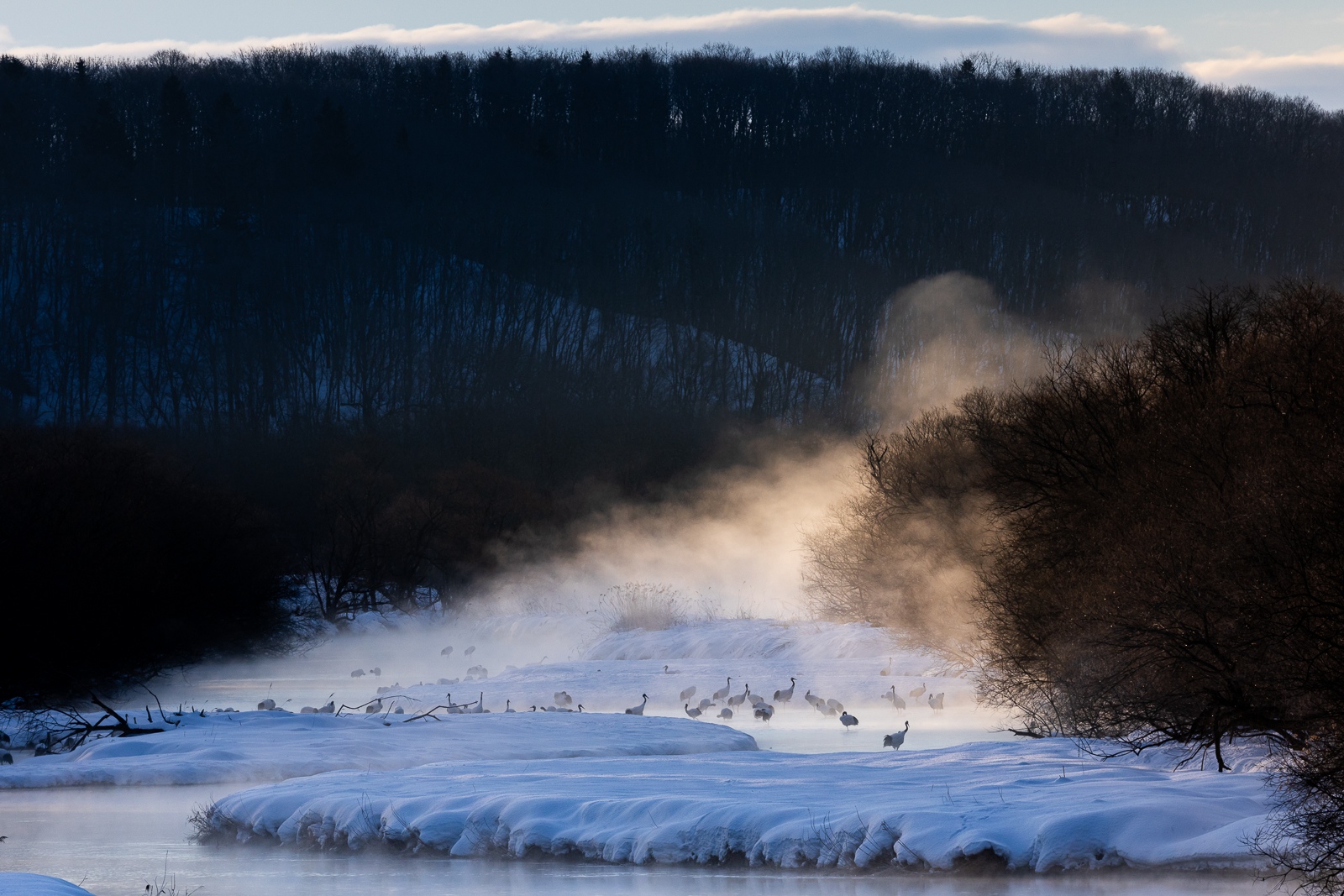 Nuestro primer destino será los humedales de Kushiro, dónde podremos disfrutar de la danza nupcial de la grulla japonesa bajo la nieve y de sus primeros vuelos del día envueltos en la fría niebla.